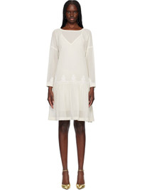 Semi-sheer cotton voile midi dress. Beaded detailing throughout. · Crewneck · Gathering at dropped waist · Dropped shoulders · Press-stud vent at cuffs · Keyhole with hook-eye fastening at back collar · Includes cotton voile slip This item is part of a limited run of 23. Supplier color: Cream 100% cotton. Made in India 252169F054001