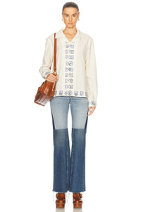 Details - 70% cotton, 30% silk - Made in India - Dry clean only - Button-down closure - Notched collar - Graphic trim design - Our Style No. BOFE-WS71 - Manufacturer Style No. MRF24SH035
