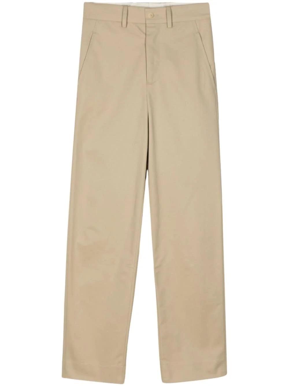 high-rise straight-leg cotton trousers Highlights - Khaki - Cotton - Adjustable rear buckle - Two side slash pockets - Rear patch pocket - High-rise - Straight leg Made in United States Composition Cotton 100%