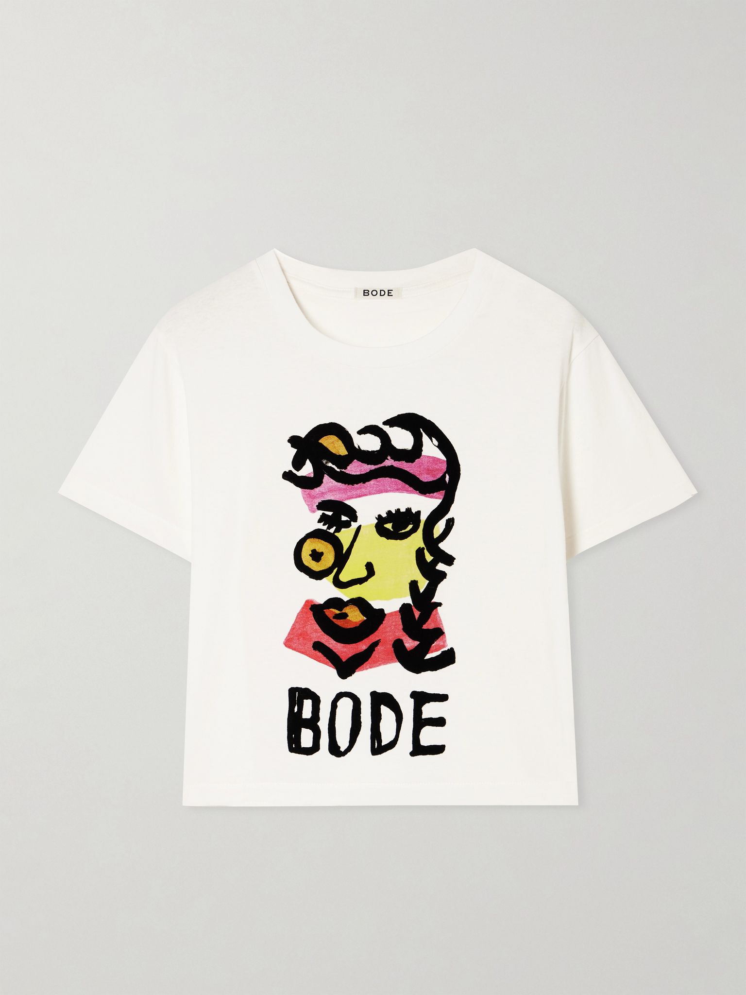 The abstract print on BODE's 'Visage' T-shirt pays homage to the art collections of composer Moose Charlap and his writing partner Eddie Lawrence. Made from cotton-jersey, it has a slightly cropped, boxy shape and a classic crew neckline. Size & Fit - Fits true to size, take your normal size - Designed for a slightly loose fit - Cropped length - Lightweight, non-stretchy fabric - Model is 180cm/ 5'11" and is wearing a size XSmall Model measurements: - Bust: 80cm/ 31.5" - Waist: 65cm/ 25.5" - Hip: 89cm/ 35" Details & Care - Multicolored cotton-jersey - Slips on - 100% cotton - Machine wash