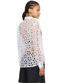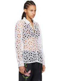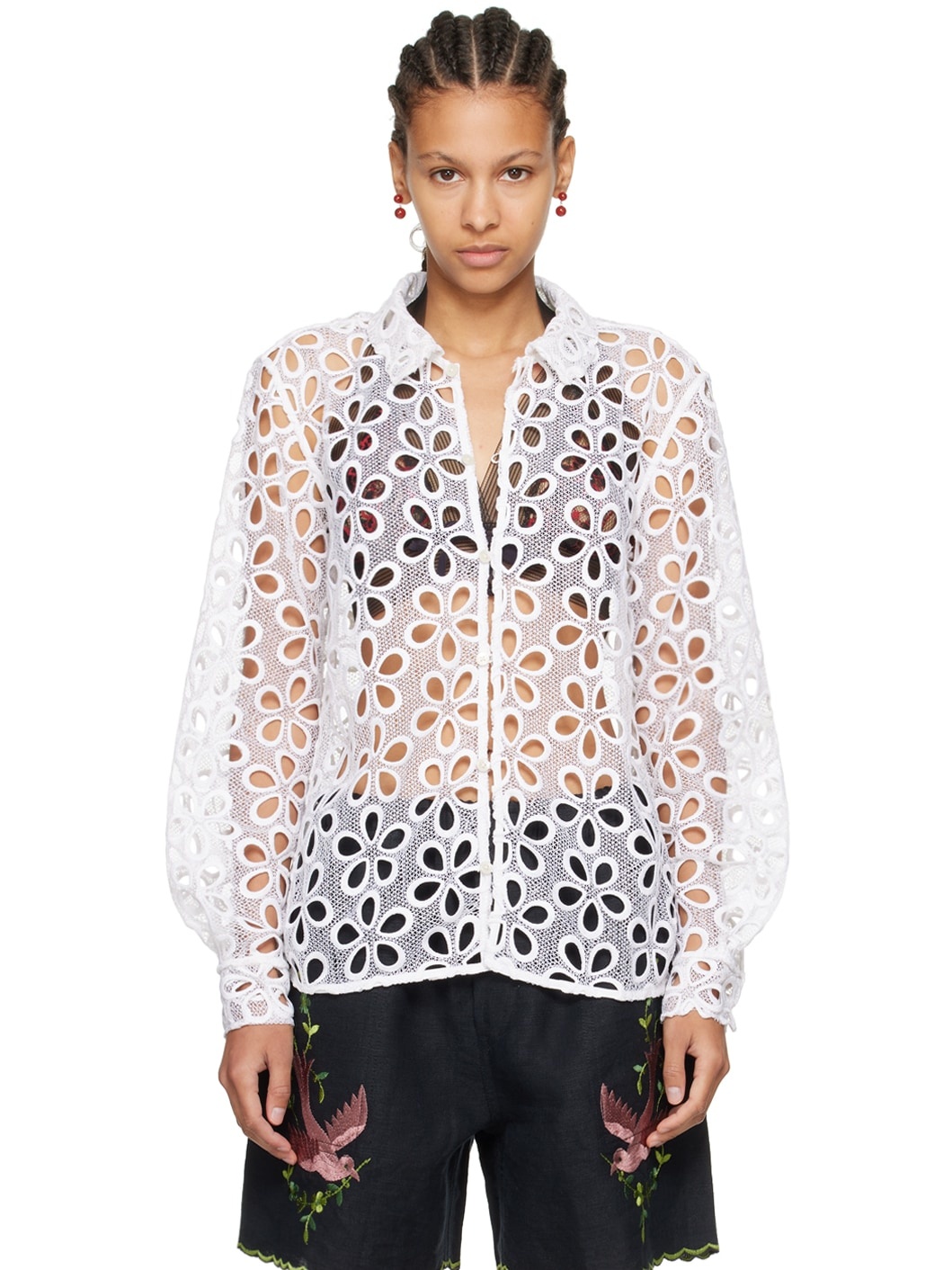 Sheer cotton lace shirt. Cutouts and floral pattern embroidered throughout. · Spread collar · Button closure · Single-button barrel cuffs This item is part of a limited run of 146. Supplier color: Natural