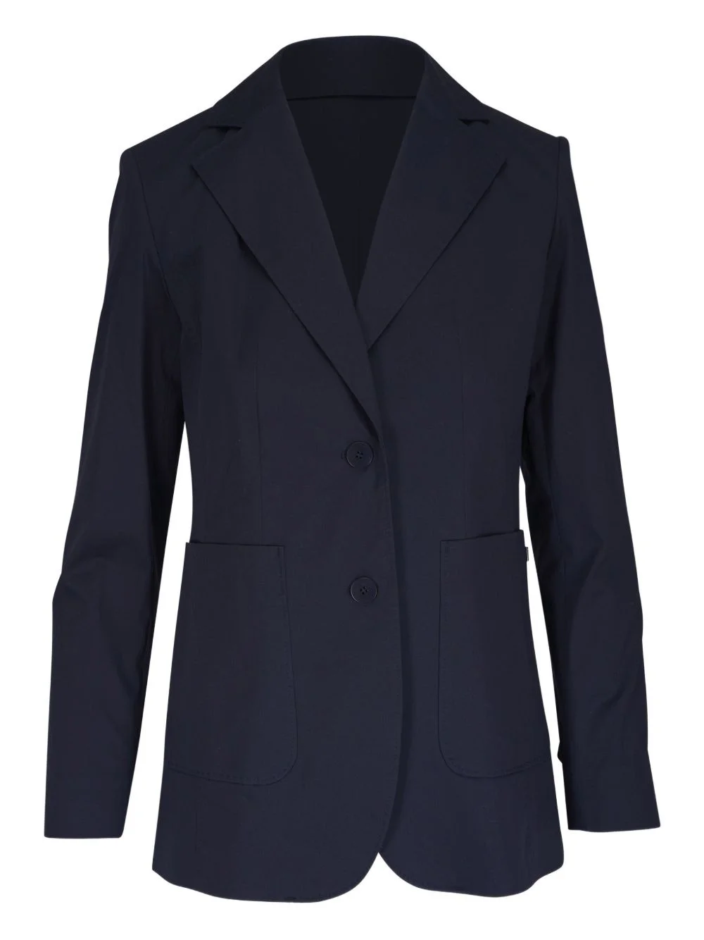 Amande single-breasted blazer Highlights - Navy blue - Two front pockets - Notched lapels - Button fastening - Long sleeves - Back vent Made in United States Composition Cotton 97%, Spandex/Elastane 3%