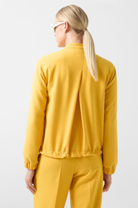 Double-face fabric in a stretchy viscose blend characterizes the Carmen blouson as a contemporary piece. It pairs perfectly with the matching Ylvi pants. Details, like the elasticated cuffs on the sleeves and the adjustable hem edge, make it even more comfortable to wear, while the box pleat on the back adds a feminine accent. Style number 244-3650-9168-051 Details - Blouson in a regular fit - Narrow stand-up collar - Box pleat at the back - Slightly overcut shoulders and sleeves with elasticated cuffs - Concealed two-way zipper with “B” logo pendant - Quilted snap button placket - Two side welt pockets with BOGNER rivets - Flowing partial lining and corded ribbon loop inside - Hem finished with drawstring tunnel, stoppers and logo plaque - Back length: 59 cm Material & care Material Shell: 63% Polyester, 31% Viscose, 6% Elastane Shell 2: 100% Polyamide Lining: 52% Polyester, 48% Viscose Material description Double-face fabric in a stretchy viscose blend with details made from polyamide, of which 45% is of recycled origin Flowing partial lining in a viscose blend Care do not wash do not bleach do not tumble dry handwarm ironing gentle dry-cleaning no wet-cleaning