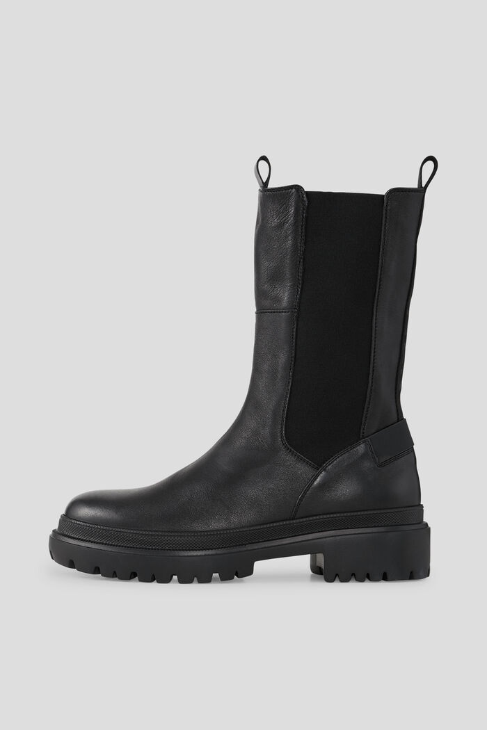 The higher fit and a logo jacquard band on the back give these Chesa Alpina Chelsea boots in exclusive calfskin leather a modern upgrade. The stretchy inserts in the sides and short bootstraps on the shaft create a signature look and make them easy to pull on. The profiled EVA sole is ultra-lightweight and ensures a secure foothold. Order no. 224-9S03-Z009-AAB Details - Leather Chelsea boots in slim-fitting design - Stretchy inserts in the sides - Bootstraps on the front and back of the shaft - Rounded toe - Rubberized tab detail and BOGNER jacquard band on the back - Removable soft insole - Bootleg height: 23 cm - Bootleg width: 10 cm - EVA profiled sole with platform - Plateau height (front): 3,5 cm - Heel height: 5 cm - Supplied with branded shoe bag - Made in Italy Material & care Material Shell: Leather;Lining: Leather;Insole: Leather;Sole: Rubber Luxurious calfskin with a smooth texture and stretchy insertsModern EVA profiled soleContains non-textile material of animal origin