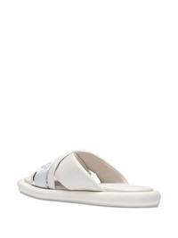 criss-cross logo flat sandals Highlights - Off white - Criss-cross strap - Logo detail - Open toe - Flat sole Imported Composition Outer: Leather 100% Lining: Leather 100% Sole: Rubber 100%