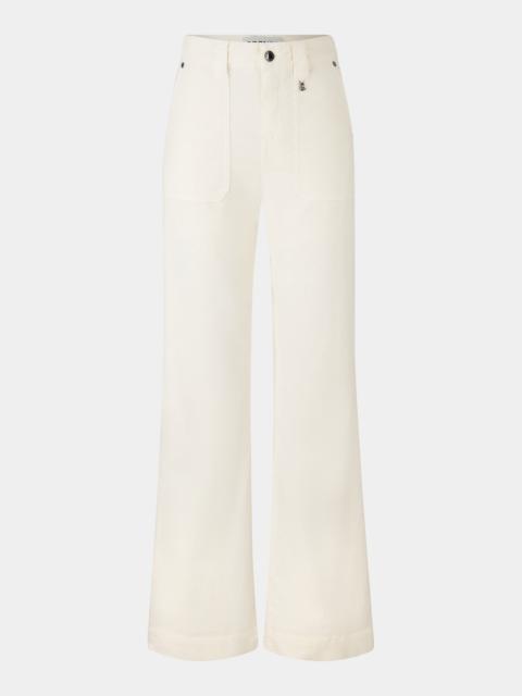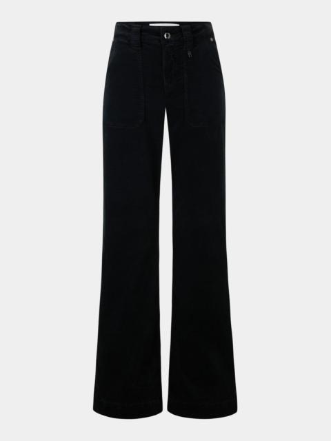 In a flared look, the Devin velvet trousers are a modern all-rounder. Embossed rivets on the pockets and the classic waistband with a button and zip fastener and label patch on the back characterize the design - accentuated by topstitched details. Style number 254-1621-1065-026 Details - Velvet trousers in a regular fit - Straight leg with flare - Reinforced hems - Closed with logo button and concealed zipper - Attached waistband with belt loops for belts up to 5 cm - Side slit pockets Two patch back pockets - Embossed rivets, label signe pendant and label patch on the waistband - Foot width: 50 cm Material & care Material Shell 1 1. Layer: 98% Cotton, 2% Elastane Material description Stretch cotton in velvet look Material hints Contains non-textile parts of animal origin Care mild fine wash do not bleach mild drying process handwarm ironing do not dry-clean no wet-cleaning Use mild detergent. Do not use fabric softener