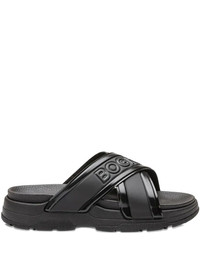 embossed-crossover flat sandals Highlights Imported Composition Outer: Polyurethane 100% Lining: Polyurethane 100% Sole: Rubber 100%