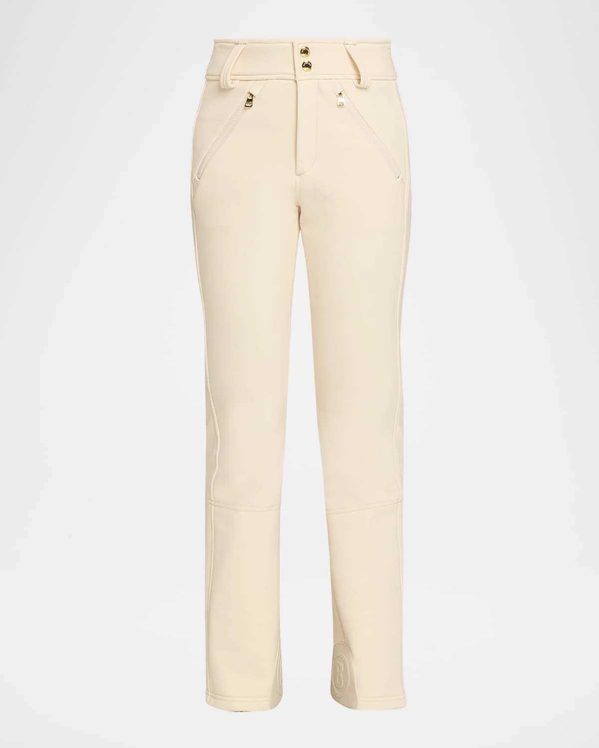 Crafted from threelayer Schoeller softshell fabric with a waterrepellent finish, the "Hazel" ski pants by Bogner offer highperformance capabilities with shaping seams and 4way stretch technology for endless slopestyle comfort. Midrise; inner hookandeye closure Angled zip pockets Slim, straight legs Full length; zip hem for snowboot comfort Press stud/zip fly; belt loops Nylon/polyamide/elastane Trim: Metal Unlined Machine wash gentle Imported