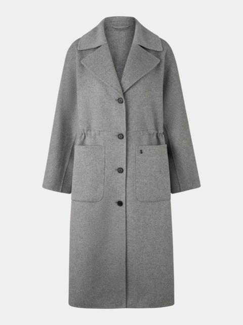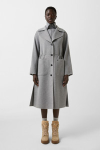 The Imani coat is made from pure wool in a double-faced fabric and features classic lapels and logo buttons. The cropped sleeves, adjustable waist and side slit hem ensure comfort. Patch pockets and stylish reinforced seams round off the piece. Style number 254-4605-9844-017 Details - Loose fit wool coat - Lapel collar - Long, cropped sleeves - Clean cuffs - Closed with BOGNER buttons - Two patch pockets with B-signe - Overcut shoulders Reinforced seams - Inner drawstring with logo-embossed stoppers and metal eyelets at waist height - Hem slit at the side - Back length: 114 cm Material & care Material Shell 1 1. Layer: 100% Wool Material description Double-face quality made from pure wool Material hints Contains non-textile parts of animal origin Care do not wash do not bleach do not tumble dry handwarm ironing gentle dry-cleaning no wet-cleaning