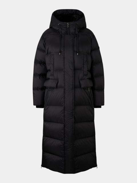 Featuring a quilted design with goose down and feather padding, the Jonna down coat is an insulating piece, complemented by a detachable hood made of pure lambskin hood, ribbed cuffs and buttoned pockets. The lightweight ripstop fabric offers water-resistant and breathable properties. Modern label details add an iconic finishing touch to the B-Jacket. Style number 254-4614-8233-133 Details - Quilted down coat in a lightweight loose fit B jacket - Fixed hood with drawstring Detachable lambskin hood - Long sleeves - Cuffs with press studs and ribbed cuffs - Concealed, underlaid two-way zip Concealed press stud placket - Two welt pockets with concealed snap fastener at chest height Two flap pockets with concealed snap fasteners Two side zip pockets One inside pocket - BOGNER embossed metal eyelets and grosgrain ribbon with logo embossed metal ends on the hood Logo 'B' logo patch on the sleeve B pendant on the zippers - Detachable, elasticated shoulder straps with logo design on the inside - With durable water-repellent finish - Warming padding made from goose down and feathers - Hem with side zippers - Back length: 116 cm Material & care Material Shell 1 1. Layer: 100% Polyamide 2. Layer: 100% Polyurethane Lining 1 1. Layer: 100% Polyamide (Recycled) Lining 2 1. Layer: 100% Polyester (Recycled) Filling 1 1. Layer: 90% Goose down, 10% Goose feathers Shell 2 1. Layer: 100% Lamb Material description Lightweight, durably water-repellent and breathable ripstop fabric made of nylon with a second layer of technical fibres and a water column of 20,000 mm Lining made of nylon and lining 2 made of tech fibres Warming padding made of goose down and feathers Sterilization number UT 70055 (CN) Material hints Contains non-textile parts of animal origin Sterilisation number: This article is a product with a filling of animal origin. It has been properly sterilised by the manufacturer so that no harmful microorganisms can be transported in the filling. With respect to our environment, this product was produced without the intentional addition of per- and polyfluoroalkyl substances (PFAS). It offers water-repellent properties that increasingly avoid the use of harmful, persistent chemicals. To maintain the high functionality and durability of the garment, we recommend diligent product care in accordance with the instructions on the care label. Reactivation of the existing impregnation by washing with subsequent moderate heat treatment (dryer - impregnation programme), see care label or use a professional cleaning service. After repeated washing or cleaning re-impregnation is recommended. Care do not wash do not bleach do not tumble dry do not iron gentle dry-cleaning wet-cleaning