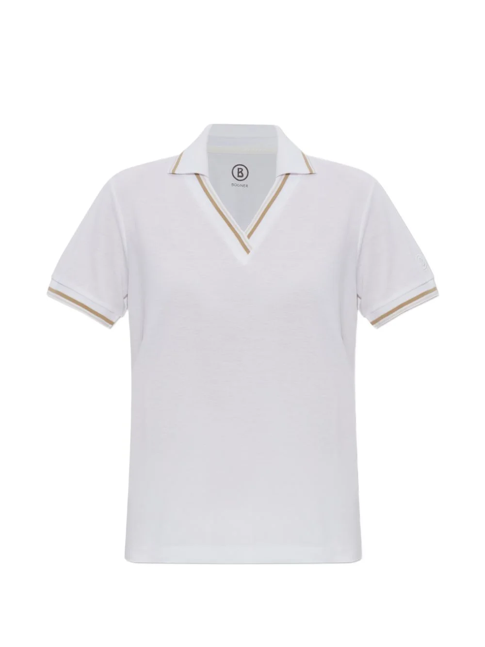 Jula striped V-neck T-shirt Highlights - White - Striped collar - Striped sleeves - V-neck - Cotton Imported Composition Cotton 60%, Lyocell 40% Washing instructions Machine Wash