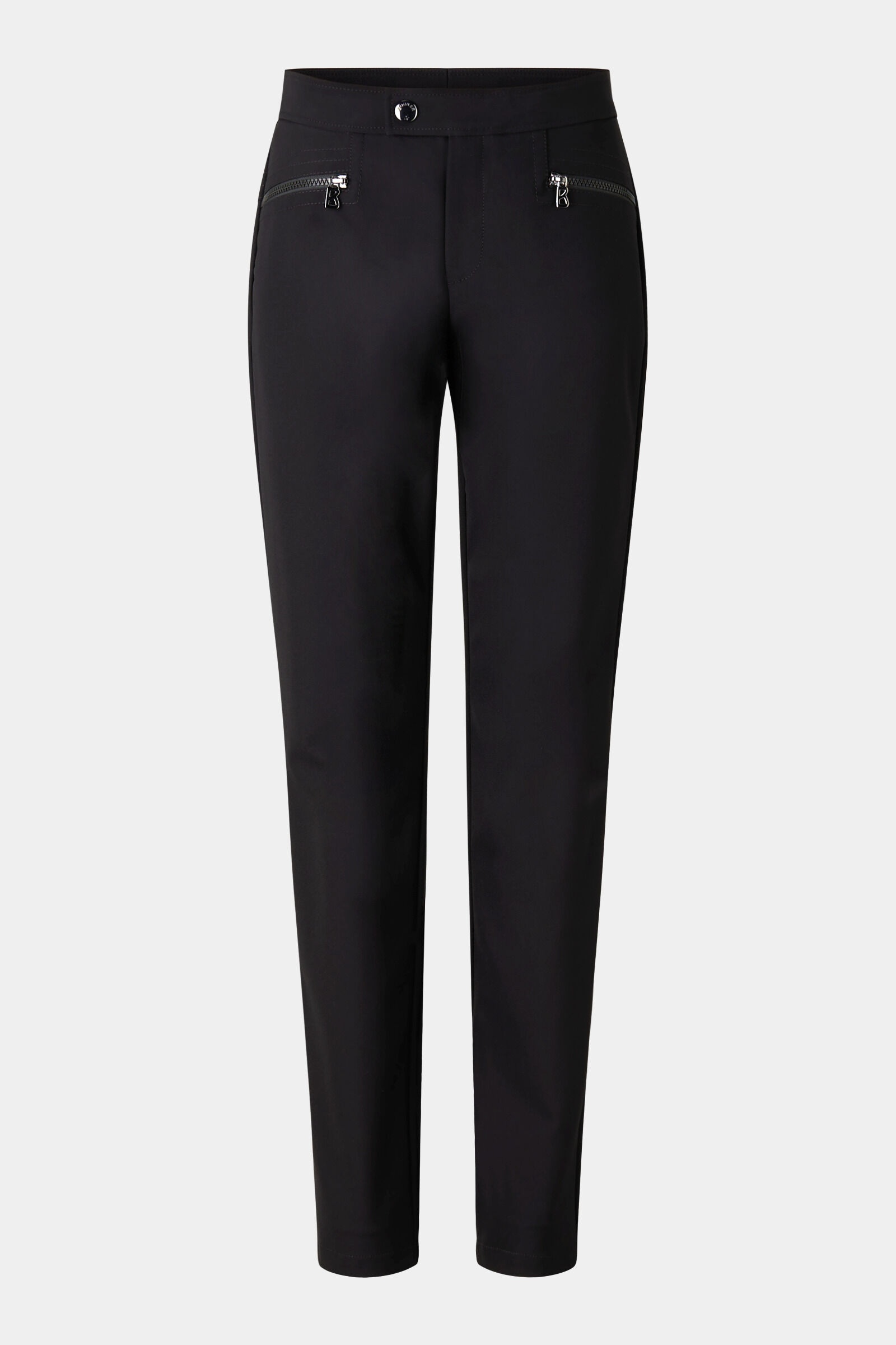 In a slim-fitting silhouette and with zippered pockets, these Lindy pants make a fashionable item. Snap button fastening adds the appropriate finishing touch. Logo pendants and tone-on-tone decorative stitching accentuate the design, while four-way stretch fabric provides a comfortable finish. Style number 244-1637-7899-026 Details - Stretch pants in slim-fitting silhouette - Hems finished with turn-ups - With metallic BOGNER snap button, inner stay button and concealed zipper for fastening - Simple, attached waistband - Two zippered welt pockets with “B” logo pendant - Decorative stitching and shaping darts - Foot width: 28 cm Material & care Material Shell: 88% Polyamide, 12% Elastane Material description Four-way stretch fabric made of technical fibers Care mild fine wash do not bleach do not tumble dry handwarm ironing gentle dry-cleaning no wet-cleaning Use mild detergent; do not use fabric softener