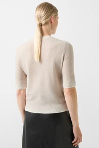 In a pure new wool and cashmere blend, the Luise knitted top makes a sumptuous impact as a comfortable fashion piece. It is perfect paired with the matching Lauren knit jacket. Accents are provided by the rounded neck and ribbed cuffs in a fade-out design. Style number 244-8647-2761-756 Details - Knitted top in regular fit - With details in fade-out design - Classic round neckline - Short sleeves with ribbing cuffs - Straight hem finished with ribbed waistband and “B” logo plaque Material & care Material Shell: 70% Virgin wool, 30% Cashmere Shell 2: 67% Wool, 33% Polyamide Material description Finely knitted fabric made from pure new wool and cashmere with wool-blend details Care very mild fine wash do not bleach do not tumble dry handwarm ironing gentle dry-cleaning no wet-cleaning Use wool detergent; do not use fabric softener
