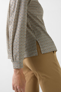 Thanks to its graphic print design, the Lyja blouse shows its worth as a highlight piece for your looks. The turn-down collar and a mother-of-pearl-sheen button placket provide classic additional features. The pleat details on the cuffs and on the back yoke add feminine accents. Style number 244-5636-8991-A70 Details - Blouse in regular fit - In graphic print design - Turn-down collar with striped knitted trim - Narrow back yoke with attached pleated section - Long sleeves with attached cuffs and pleated details - Fastened with BOGNER mother-of-pearl-sheen button placket - Side-slit hem with logo plaque Material & care Material Shell: 100% Cotton Material description Lightweight jersey fabric made from mercerized cotton Material hints Contains non-textile parts of animal origin Care mild fine wash do not bleach do not tumble dry handwarm ironing do not dry-clean no wet-cleaning Use mild detergent; do not use fabric softener