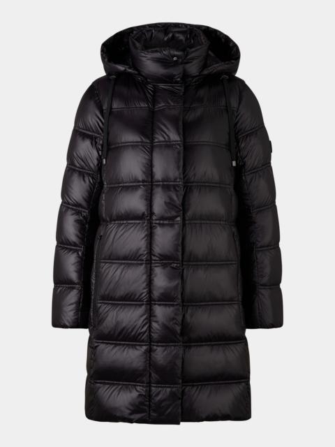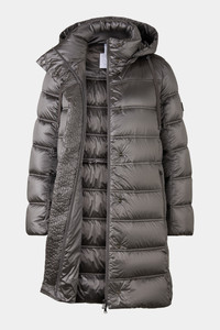 The Lynn down short coat features a quilted design with pure duck down padding, a detachable hood and an internal drawstring at waist height. The concealed snap button placket and zip pockets with iconic pendants round off the piece perfectly. Style number 254-3630-6549-950 Details - Quilted down short coat in a regular fit - Padded stand-up collar with BOGNER press studs - Detachable hood with drawstring - Long sleeves - Elasticated cuffs - Concealed two-way zip with B pendant and concealed press stud placket - Two side B-zip pockets - Logo embossed eyelets, stoppers and grosgrain ribbon with metal ends on the drawstring Logo rubber patch on the sleeve Internal drawstring with stopper at waist height - With water-repellent finish - Warming duck down padding - Clean hem finish - Back length: 86 cm Material & care Material Shell 1 1. Layer: 55% Polyamide, 45% Polyamide (Recycled) Lining 1 1. Layer: 55% Polyamide, 45% Polyamide (Recycled) Filling 1 1. Layer: 100% Duck down Material description Water-repellent nylon with nylon lining and warming padding made of pure duck down Sterilization number UT 70027 (CN) Material hints Contains non-textile parts of animal origin Sterilisation number: This article is a product with a filling of animal origin. It has been properly sterilised by the manufacturer so that no harmful microorganisms can be transported in the filling. With respect to our environment, this product was produced without the intentional addition of per- and polyfluoroalkyl substances (PFAS). It offers water-repellent properties that increasingly avoid the use of harmful, persistent chemicals. To maintain the high functionality and durability of the garment, we recommend diligent product care in accordance with the instructions on the care label. Reactivation of the existing impregnation by washing with subsequent moderate heat treatment (dryer - impregnation programme), see care label or use a professional cleaning service. After repeated washi Care mild fine wash do not bleach mild drying process do not iron gentle dry-cleaning wet-cleaning Wash separately on a gentle cycle at 30°C, only use down or liquid mild detergent, do not use fabric softener
