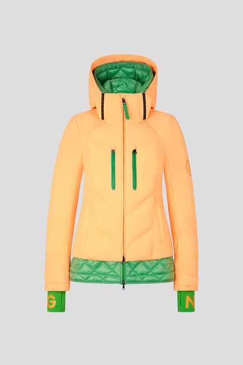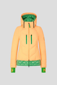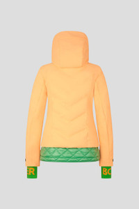 Strong on performance, thanks to its freely adjustable quilted windbreaker inlay and four-way stretch fabric with Freudenberg comfortemp® padding, the Maela ski jacket is hard to beat as a favorite for winter sports. Well-placed zippered pockets and closures and a zip-on hood round off the piece. Order no. 234-3177-4815-357 Details - Regular fit ski jacket - Made from four-way stretch fabric with bonded details - Padded stand-up collar with hood attachment - Zip-on hood with adjustable drawstring and inlay print - Zip-on quilted windbreaker inlay with hood, drawstring and logo print details - Sleeves with clean cuffs and adjustable velcro straps - Inner fixed thumb loops with logo lettering - ‘B’ rubber logo and zip pocket on left sleeve - Fastens with a two-way zipper and ‘B’ logo corded ribbon tabs - Two zippered pockets at chest level - Two side zipper pockets - One closable inside pocket - Ultrasonic seams on sleeves and hood as well as decorative and topstitching seams - Water column: 20.000 mm - Breathability: 20.000 g/m²/24h - Comfortable padding - Extended windbreaker hemline with snap buttons and adjustable drawstring - Clean jacket hem finish - Back length: 64 cm Material & care Material Shell: 88% Polyamide, 12% Elastane 2. Layer: 100% Polyurethane Shell 2: 88% Polyester, 12% Elastane 2. Layer: 100% Polyurethane Lining: 88% Polyester, 12% Elastane Lining 2: 100% Polyester Padding: 100% Polyester Inserted part on shell fabric: 100% Polyamide Padding: 100% Polyester Material description Functional construction in technical four-way stretch with polyurethane second layer and bonded details, water and wind resistant, breathable Water-repellent finish Outer fabric, lining and padding made of technical fibres Lining fabric 2 made from 100% recycled polyester Padding 1 made from 100% recycled polyester, Freudenberg comfortemp® padding 100% recycled polyamide quilted insert with technical padding Care mild fine wash do not bleach mild drying process do not iron do not dry-clean wet-cleaning Use only down or mild detergent. Do not use fabric softener