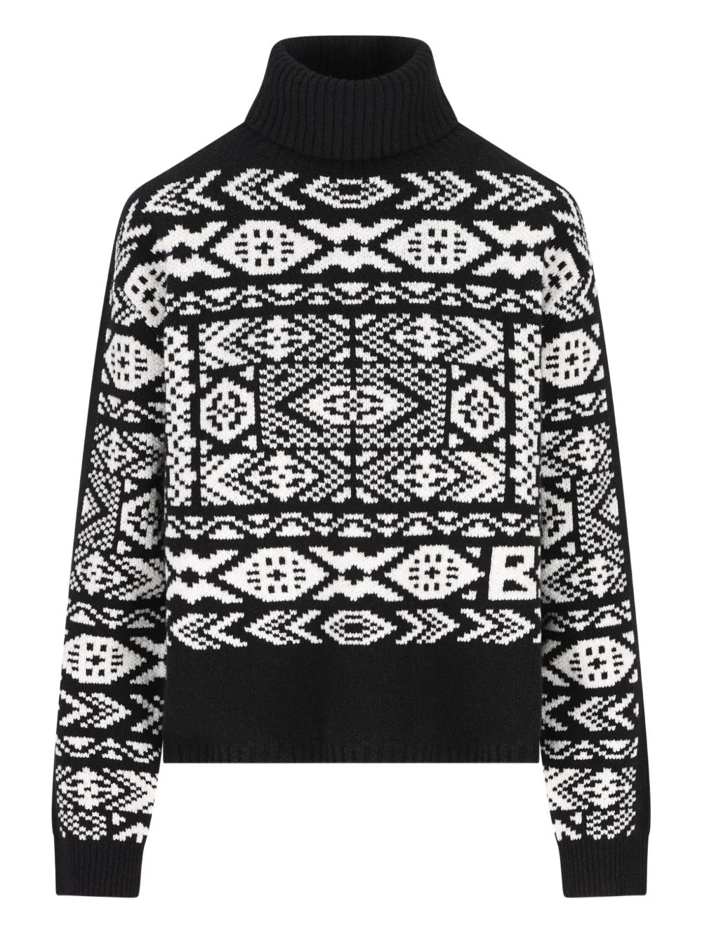 Nadin roll-neck patterned sweater Highlights - Black - Roll neck - Geometric pattern - Wool blend - Jacquard knit - White detailing Imported Composition Virgin Wool 63%, Cotton 19%, Viscose 17%, Elastane 1% Washing instructions Hand Wash