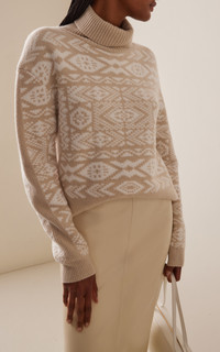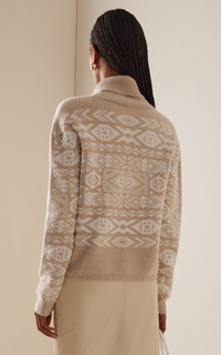 A true "Athluxury" pioneer, Bogner has been an innovator in the sportswear world for over 90 years — it's even credited with inventing the first pair of ski pants. Today, the label is known for its ski apparel that combines traditional craftsmanship with cutting-edge functionality. The 'Nadin' turtleneck sweater has a relaxed fit knit from wool with a Norwegian-inspired pattern. PRODUCT DETAILS - Suitable for sporting conditions - Slip on - Composition: 100% virgin wool - Designer color: Birch - Machine wash - Imported SIZE & FIT - Our model is wearing a size Small - Model is 5’10” with a 31” bust, 23.5” waist, and 33.5” hip