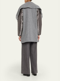 Crafted from a woolblend, the "North" poncho by Bogner is adorned with fringe trim and padded nylon sleeves for a modern, combo silhouette. Shawl collar Long sleeves Signature 'B' logo patch on the left sleeve Classic fit Hem falls to the hip Openfront Wool/nylon/polyamide Hand wash or dry clean Made in Italy