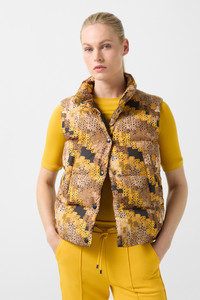 In a signature print design with warm pure duck-down padding, the Orely lightweight down vest makes an exciting favorite for your looks. Details, such as the full-length snap button placket, concealed zippered pockets and adjustable hem finish, complement this water-repellent garment. Style number 244-3690-9148-026 Details - Quilted lightweight down vest in regular fit - In “B” logo print design - Padded stand-up collar - Fastens with a BOGNER snap button placket - Two concealed side zipper pockets with logo pendant - Corded ribbon loop inside - Flowing lining - With water-repellent finish - Warm padding made of pure duck down - Straight hem finished with drawstring tunnel, logo stoppers and logo corded ribbon inside - Back length: 55 cm Material & care Material Shell: 100% Polyester Lining: 100% Polyamide Padding: 100% Duck down Material description Water-repellent technical fabric with flowing lining made from polyamide, of which 45% is of recycled origin Warm padding made of pure duck down Sterilization number UT 70027 (CN) Material hints Contains non-textile parts of animal origin Sterilisation number: This article is a product with a filling of animal origin. It has been properly sterilised by the manufacturer so that no harmful microorganisms can be transported in the filling. Care do not wash do not bleach do not tumble dry do not iron gentle dry-cleaning no wet-cleaning