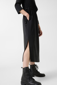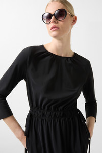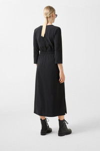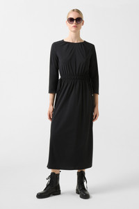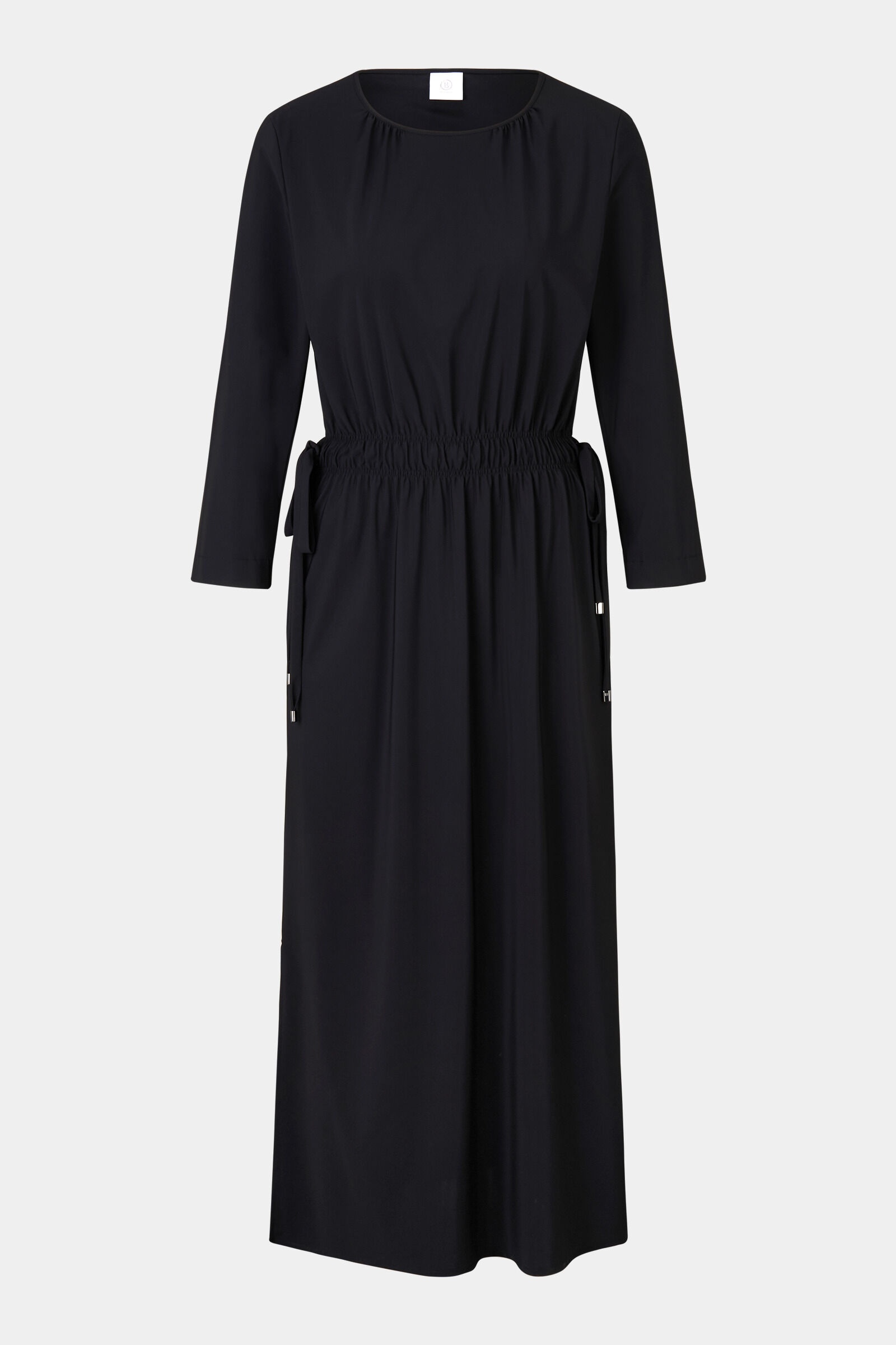 With a drawstring tunnel at the waist and a rounded neck with a gathered seam, the Shirley dress stands out as a stylish piece. Three-quarter sleeves and a slit hem edge complement the design, while discreet logo details provide accents. Style number 244-6606-9124-026 Details - Maxi Length - Dress in regular fit - Rounded neck with gathered seam - Three-quarter sleeves with finely stitched hem - Two invisible in-seam slash pockets - Drawstring tunnel at the waist with BOGNER-embossed metal eyelets and narrow ties with metal ends - Hem finished with side slits Material & care Material Shell: 73% Polyamide, 27% Elastane Material description Stretchy jersey fabric made from 73% recycled polyamide Care mild fine wash do not bleach do not tumble dry handwarm ironing gentle dry-cleaning wet-cleaning Use mild detergent; do not use fabric softener
