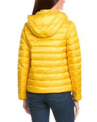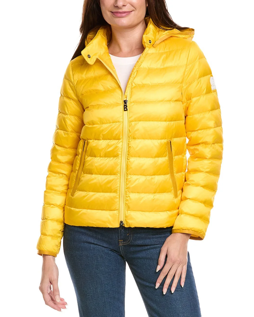 - About the brand: Luxury ski and outerwear with a stylish edge. - Thelma Down Jacket in yellow with removable hood, two zippered front pockets - Approximately 23in from shoulder to hem - Model is 5'10.5 and is wearing a size 4. Measurements may vary slightly by size. - Shell: 100% nylon - Fill: 100% duck down - Dry clean only - Imported