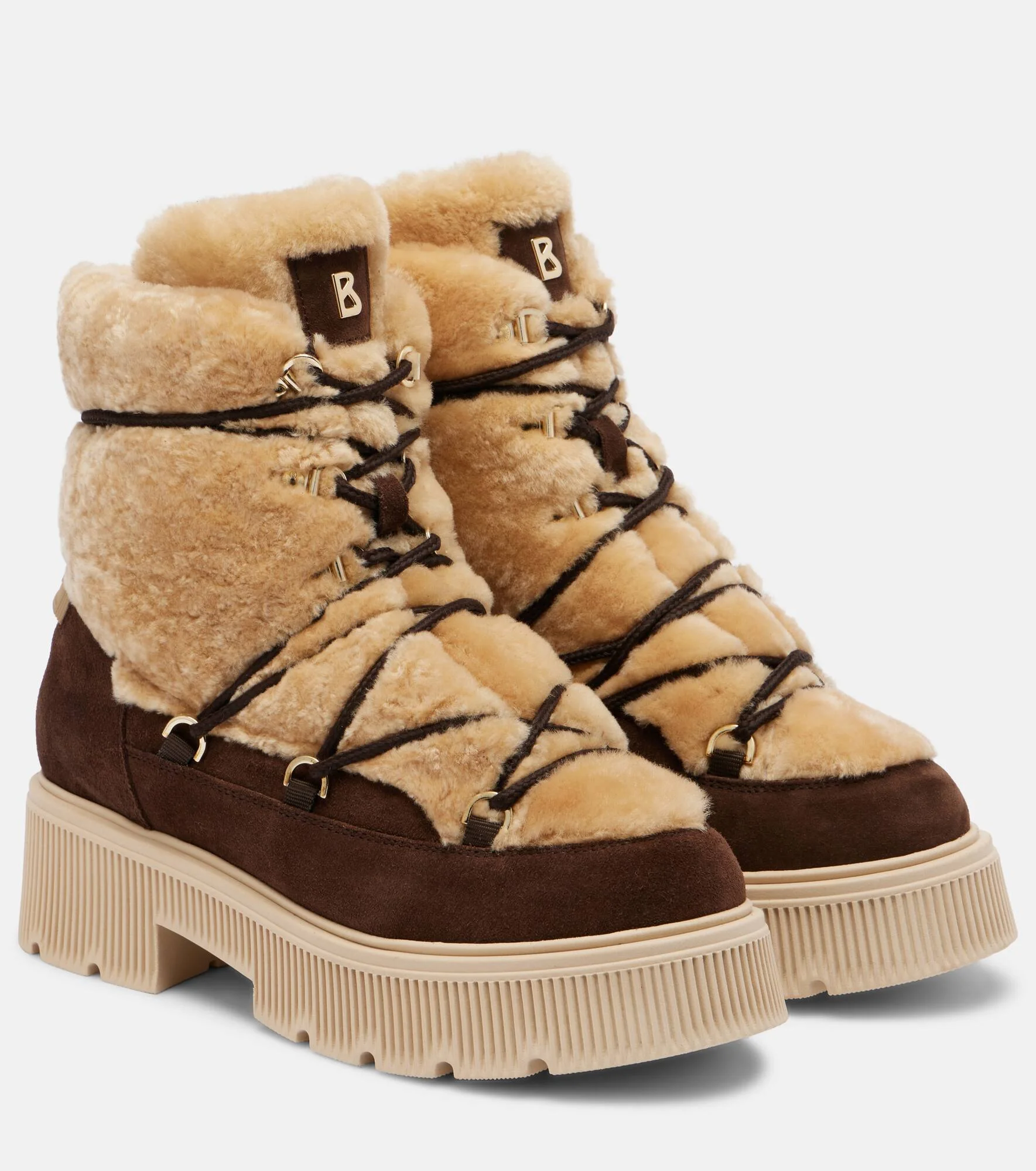 Bogner has revolutionized skiwear with time-tested designs that seamlessly transition from the slopes to the chalet. The Turin ankle boots are crafted from shearling and suede and are set atop platform soles. Product Details - Upper: leather (suede) - Lining: shearling - Sole: shearling insole, rubber sole - Toe shape: round toe - Made in Italy - Includes: shoe box, dust bag - Designer color name: Dark Brown - Item color: brown, beige - Item number: P01117922 Size & Fit - True to size - European sizes - 4cm-1.5" platform (size EU 38) - 6cm-2.5" wedge heel (size EU 38)