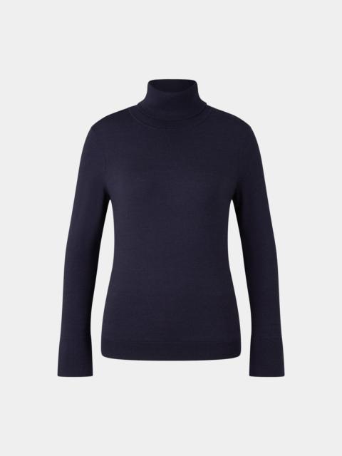The Vinny turtleneck pullover in a stretchy virgin wool and silk blend is a versatile essential for a variety of looks, comfortably complemented by slit cuffs and a ribbed waistband. A subtle logo badge rounds off this signature piece. Style number 254-8672-9781-133 Details - Turtleneck pullover in a slim fit - Ribbed turtleneck - Long sleeves - Slit cuffs - B-signe on the waistband - Straight hem with ribbed cuffs Material & care Material Shell 1 1. Layer: 79% Virgin wool, 12% Elastane, 9% Silk Material description Fine-knit fabric in a stretchy virgin wool and silk blend Care hand-wash do not bleach do not tumble dry handwarm ironing gentle dry-cleaning no wet-cleaning Use wool detergent, do not use fabric softener