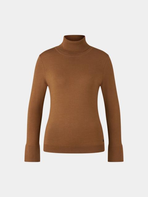 The Vinny turtleneck pullover in a stretchy virgin wool and silk blend is a versatile essential for a variety of looks, comfortably complemented by slit cuffs and a ribbed waistband. A subtle logo badge rounds off this signature piece. Style number 254-8672-9781-792 Details - Turtleneck pullover in a slim fit - Ribbed turtleneck - Long sleeves - Slit cuffs - B-signe on the waistband - Straight hem with ribbed cuffs Material & care Material Shell 1 1. Layer: 79% Virgin wool, 12% Elastane, 9% Silk Material description Fine-knit fabric in a stretchy virgin wool and silk blend Care hand-wash do not bleach do not tumble dry handwarm ironing gentle dry-cleaning no wet-cleaning Use wool detergent, do not use fabric softener