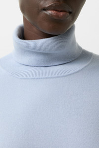 The Vinny turtleneck pullover in a stretchy virgin wool and silk blend is a versatile essential for a variety of looks, comfortably complemented by slit cuffs and a ribbed waistband. A subtle logo badge rounds off this signature piece. Style number 254-8672-9781-343 Details - Turtleneck pullover in a slim fit - Ribbed turtleneck - Long sleeves - Slit cuffs - B-signe on the waistband - Straight hem with ribbed cuffs Material & care Material Shell 1 1. Layer: 79% Virgin wool, 12% Elastane, 9% Silk Material description Fine-knit fabric in a stretchy virgin wool and silk blend Care hand-wash do not bleach do not tumble dry handwarm ironing gentle dry-cleaning no wet-cleaning Use wool detergent, do not use fabric softener
