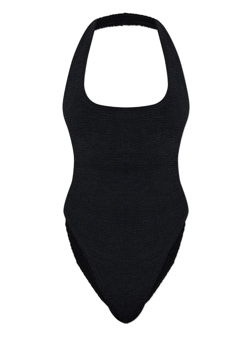 Ava halter textured swimsuit Highlights - Black - Textured finish - Halter neck - Open back - High cut leg - Be mindful to try on swimwear over your own garments. Imported Composition Outer: Recycled Nylon 88% Nylon 7%, Lycra 5% Washing instructions Hand Wash