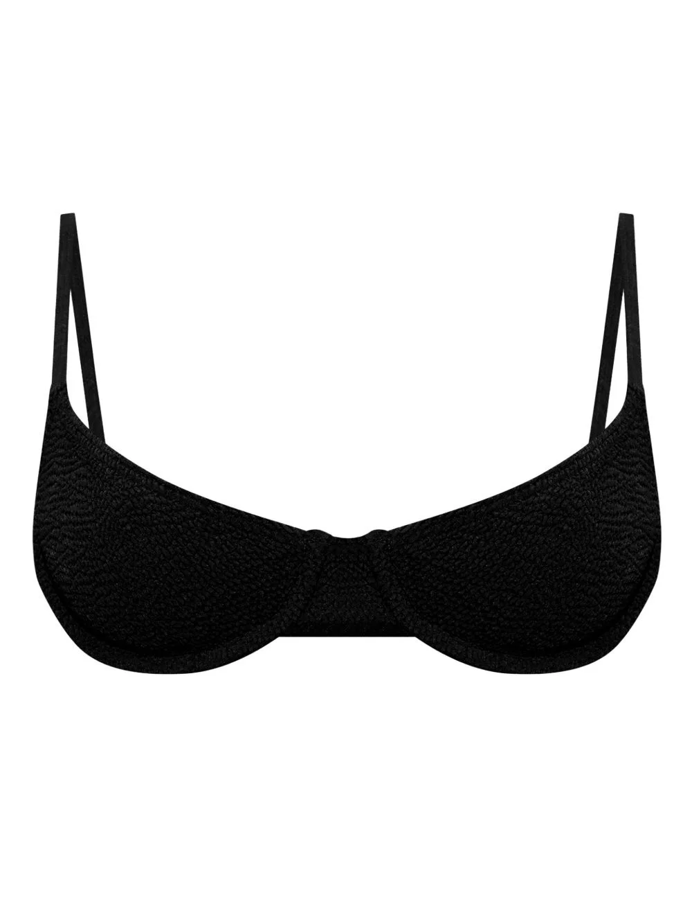 Gracie crinkled bikini top Highlights - Black - Recycled polyester - Crinkled finish - Balconette style - Adjustable spaghetti straps - Built-in underwire bra Imported Composition Recycled Polyester 100% Washing instructions Read Manufacturer Guidelines