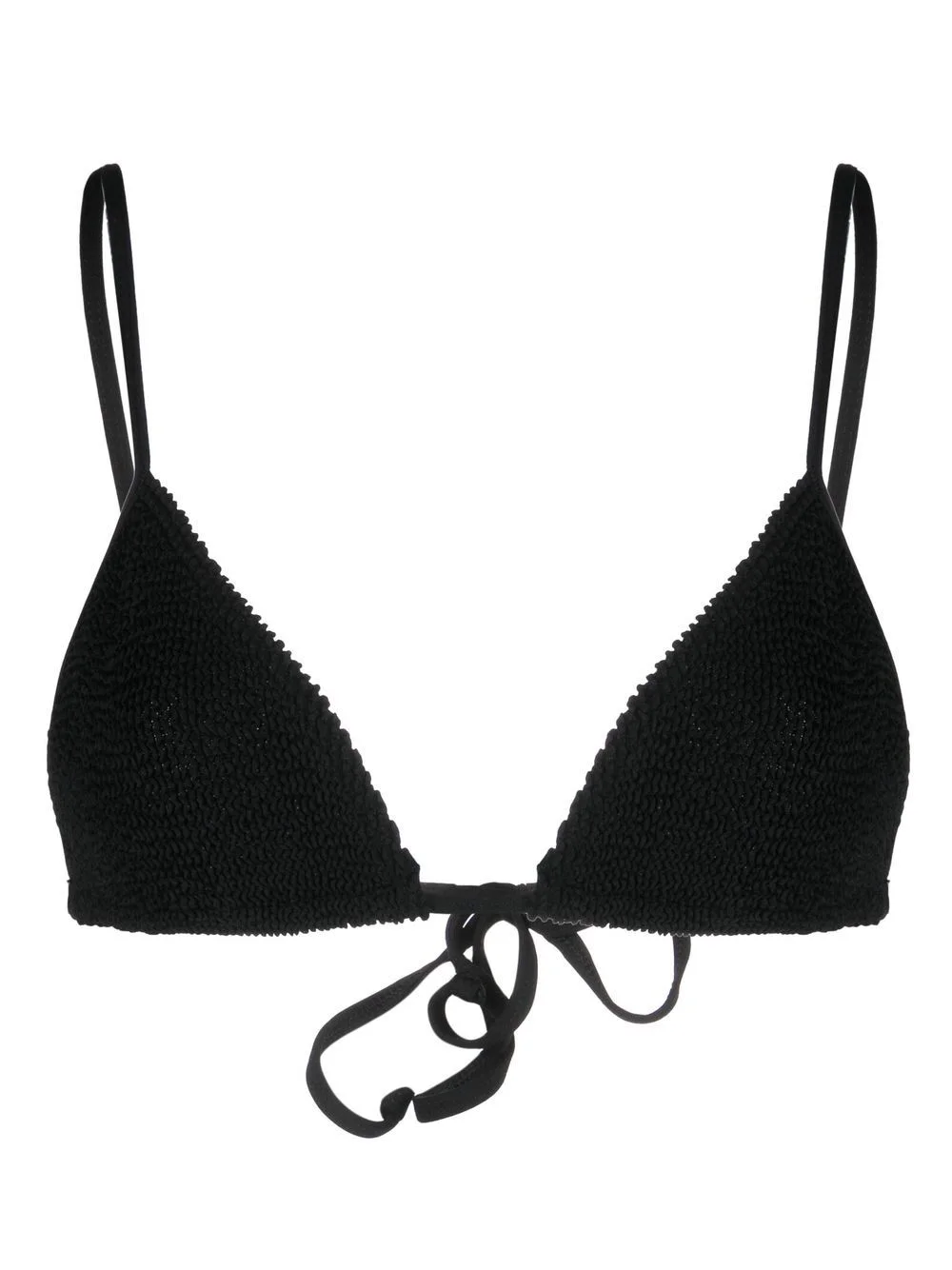 crinkled bikini top Highlights - Black - Recycled polyamide blend - Stretch-design - Crinkled finish - Adjustable spaghetti straps - Rear tie fastening Imported Composition Recycled Polyamide 55%, Polyamide 33%, Spandex/Elastane 12% SIZE & FIT Measurement BUST 23.62 in(60 cm) Washing instructions Hand Wash