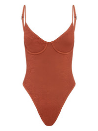Gracie One Piece swimsuit Highlights - Brown - Textured finish - Adjustable straps - Underwired cups - Low back - Be mindful to try on swimwear over your own garments. Imported Composition Recycled Nylon 88%, Nylon 7%, Lycra 5%