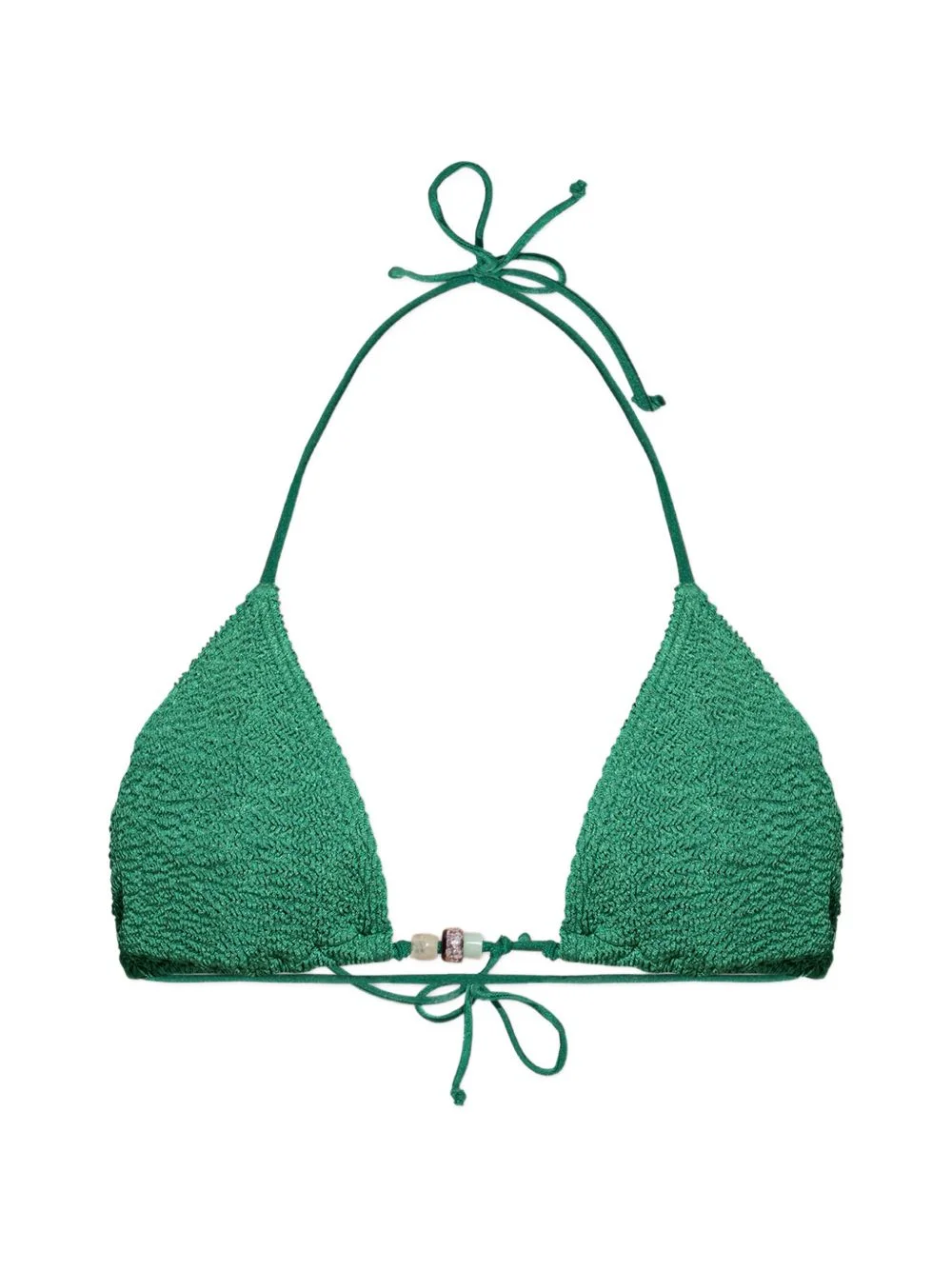 Ingrid triangle bikini top Highlights - Green - Ribbed effect - Tie fastening - Bead embellishments - Be mindful to try on swimwear over your own garments. Imported Composition Nylon 88%, Elastane 12% Washing instructions Hand Wash