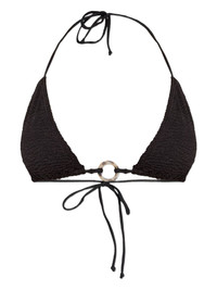 Ring Ingrid bikini top Highlights - Shimmer black - Textured finish - Ring detail - Tie fastening - Triangle cup - Be mindful to try on swimwear over your own garments. Imported Composition Recycled Nylon 88%, Nylon 7%, Lycra 5% Washing instructions Read Manufacturer Guidelines