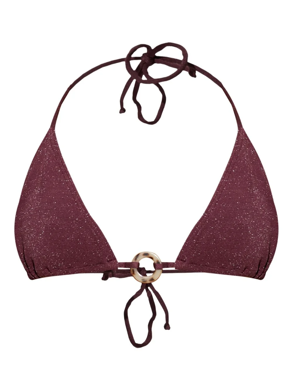 Ring triangle-shape bikini top Highlights - Purple - Ring detail - Tie fastening - Triangle cup - Be mindful to try on swimwear over your own garments. Imported Composition Nylon 85%, Lurex 10%, Lycra 5% Washing instructions Read Manufacturer Guidelines