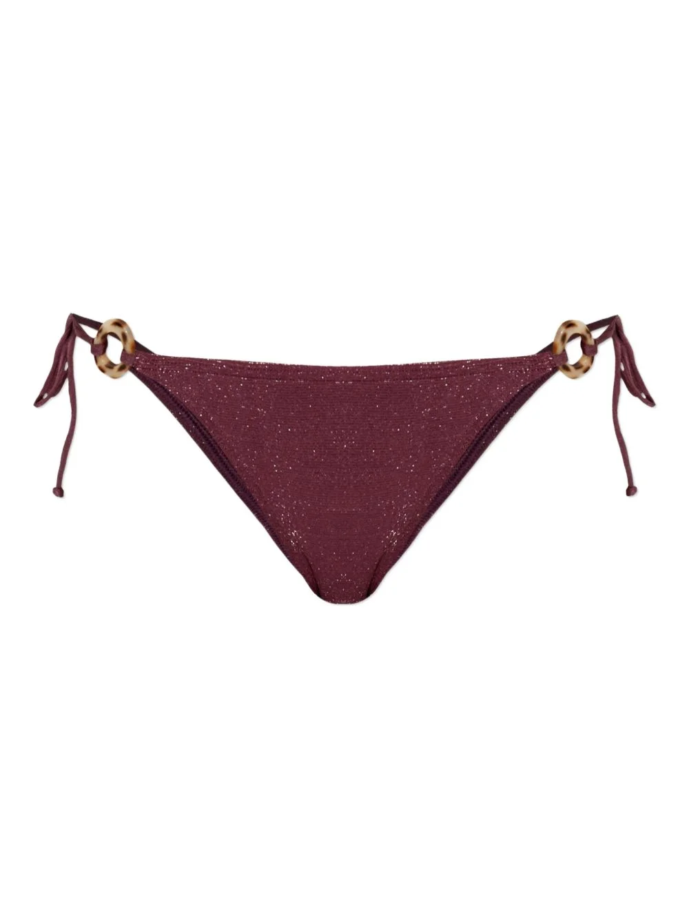 Ring bikini bottom Highlights - Burgundy - Ring detail - Side tie fastening - Be mindful to try on swimwear over your own garments. Imported Composition Nylon 85%, Lurex 10%, Lycra 5% Washing instructions Read Manufacturer Guidelines