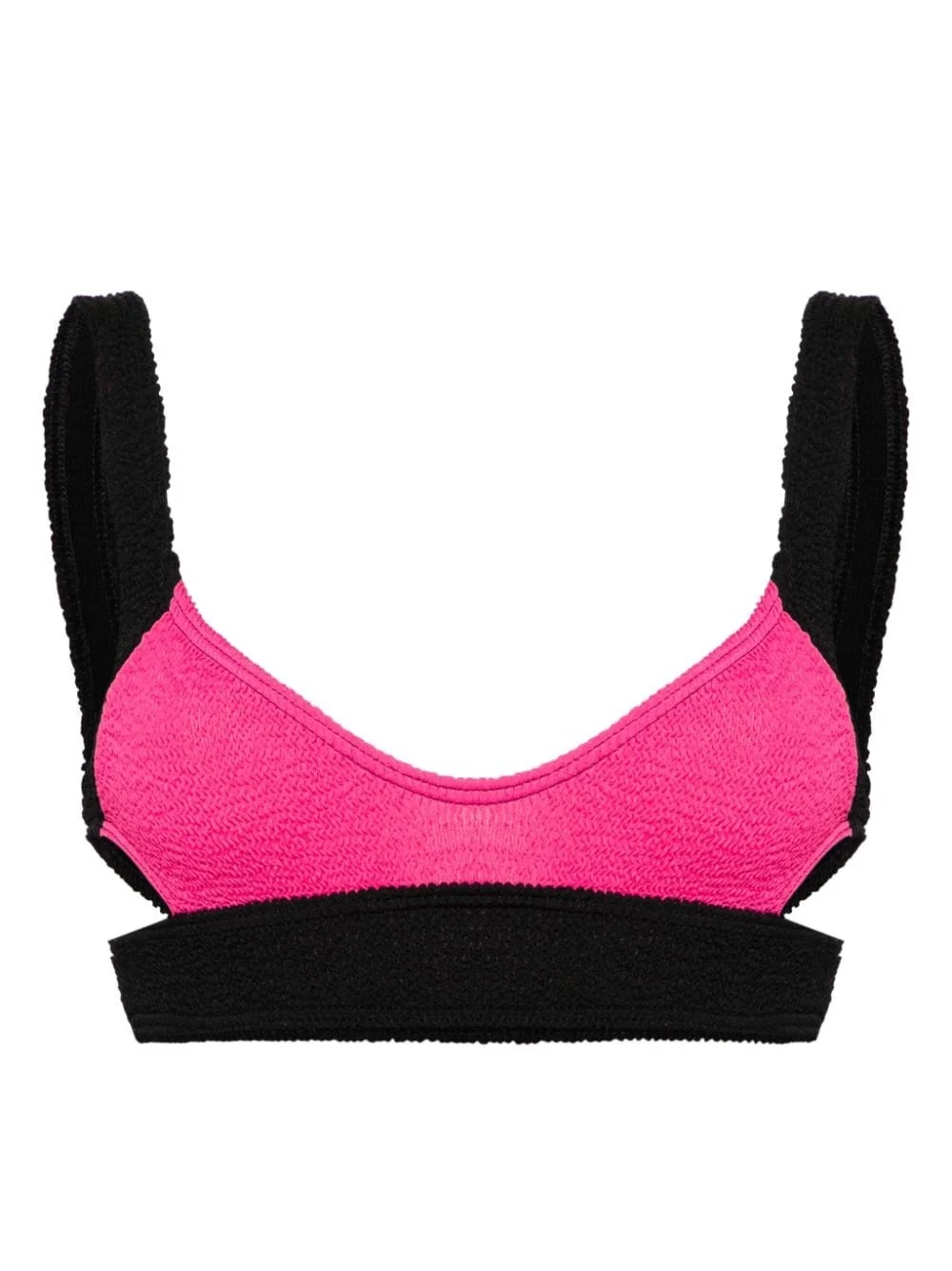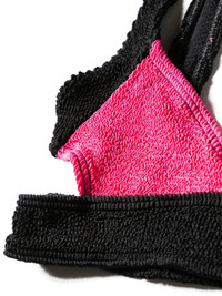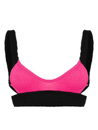 Splice Nino colour-block bikini top Highlights - Black/raspberry pink - Recycled nylon blend - Smocked panel - Colour-block design - Scoop neck - Cut-out detailing - Square open back - Unlined - Be mindful to try on swimwear over your own garments. Imported Composition Recycled Nylon 88%, Nylon 7%, Lycra 5%