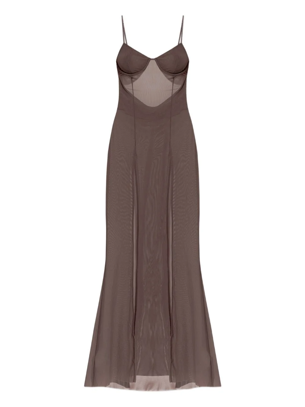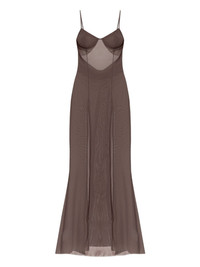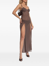 mesh slit maxi dress Highlights - Brown - Mesh finish - Thin straps - Corset detail - High slits - Floor-length Imported Composition Recycled Nylon 93%, Spandex/Elastane 7% Washing instructions Read Manufacturer Guidelines