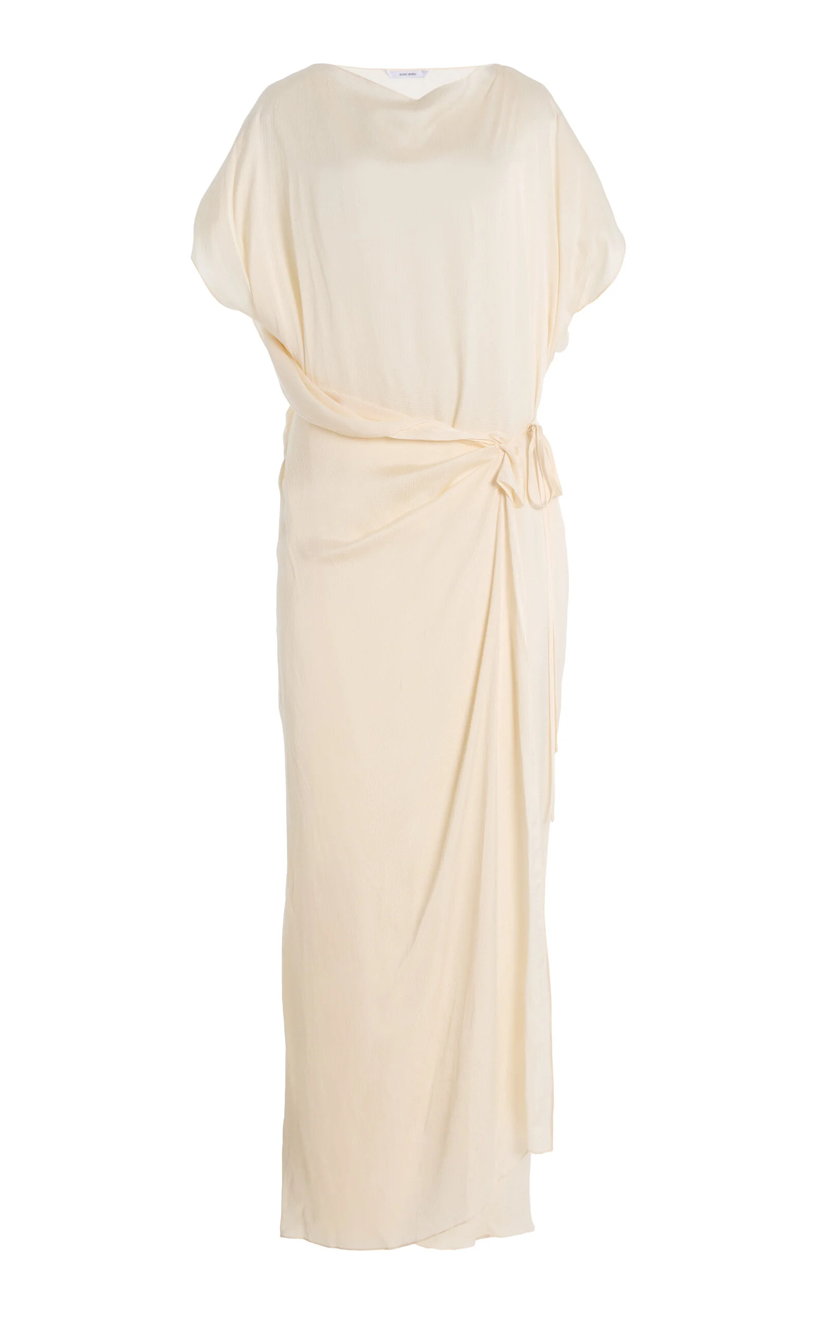 Ardea Hammered Satin Maxi Wrap Dress white