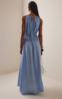 Como Tie Gathered Twill-Satin Maxi Dress blue