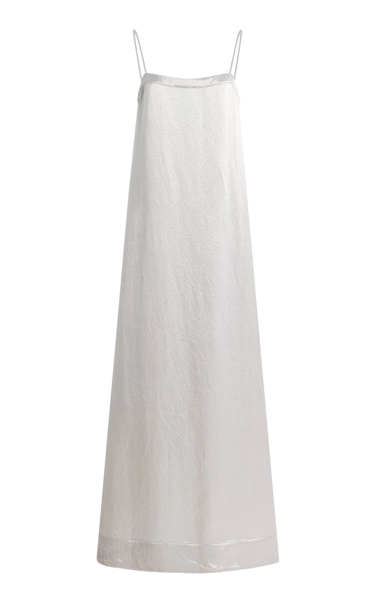 This season, Australian Natalia Grzybowski continues to flex her eye for ultra-flattering cuts that elevate fuss-free designs to chic, seductive heights—without compromising on sustainability. The ‘Kobe’ dress is tailored from a fluid satin with a subtle sheen, designed in a streamlined maxi column silhouette with delicate spaghetti straps and a minimalist square neckline. PRODUCT DETAILS - Spring '26 - Zip fastening - Composition: 100% Acetate - Designer color: Silver - Dry clean - Imported