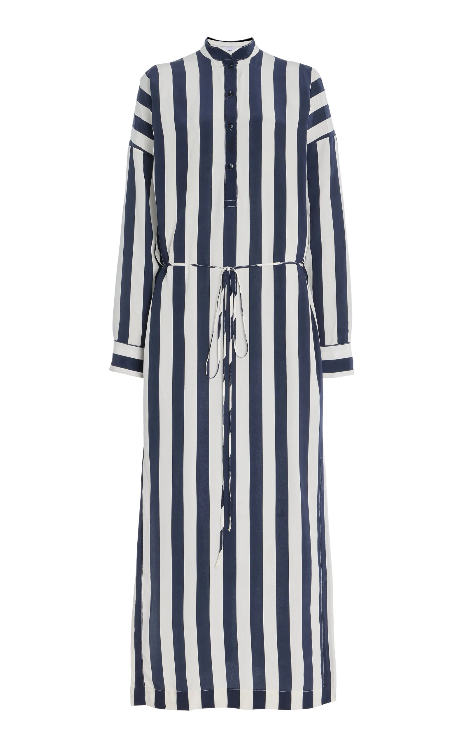 Orta Striped Silk Crepe de Chine Maxi Shirt Dress stripe