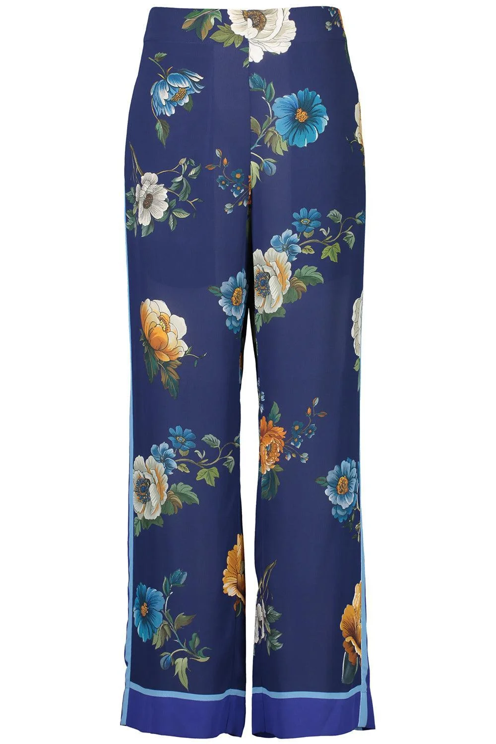 DETAILS AND INSIGHT Borgo De Nor jamie trouser in navy. 100% Viscose Dry Clean Only Made In Portugal Style JAMIE-MAGICAL BLSSM NVY