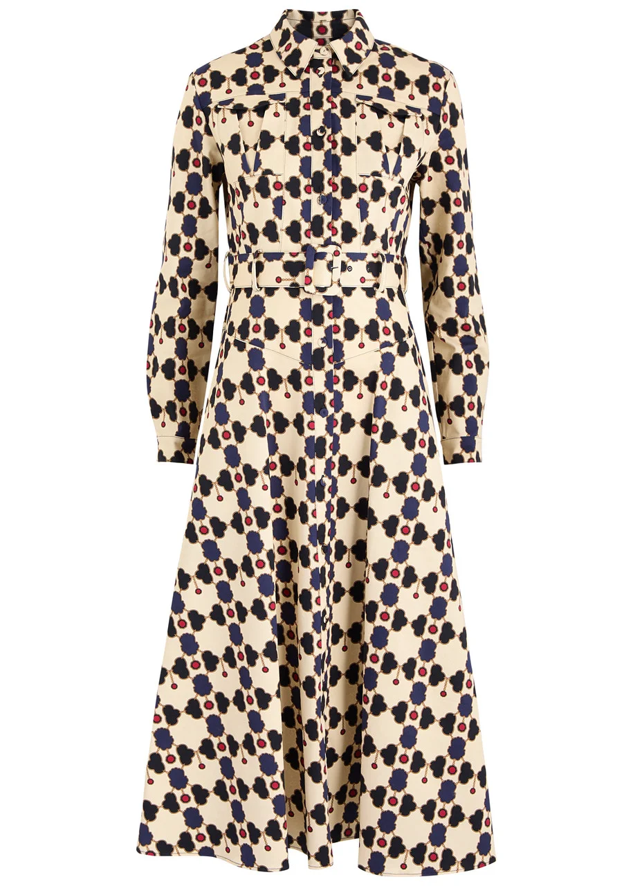 Info & Care Borgo De Nor stretch-cotton dress Lock print, contrast stitching, dropped shoulders, button-fastening keyhole cuffs, two flap front chest pockets, belt loops, detachable belt, panelled, two slip pockets, box pleat at back; Button-fastenings through front; 97% cotton, 3% elastane; Dry clean; Size & Fit Length shoulder to hem: 50 inches/ 127cm Midweight; Relaxed fit, use belt to cinch the waist; Model is 5'9"/ 175cm and wears a size;UK8;