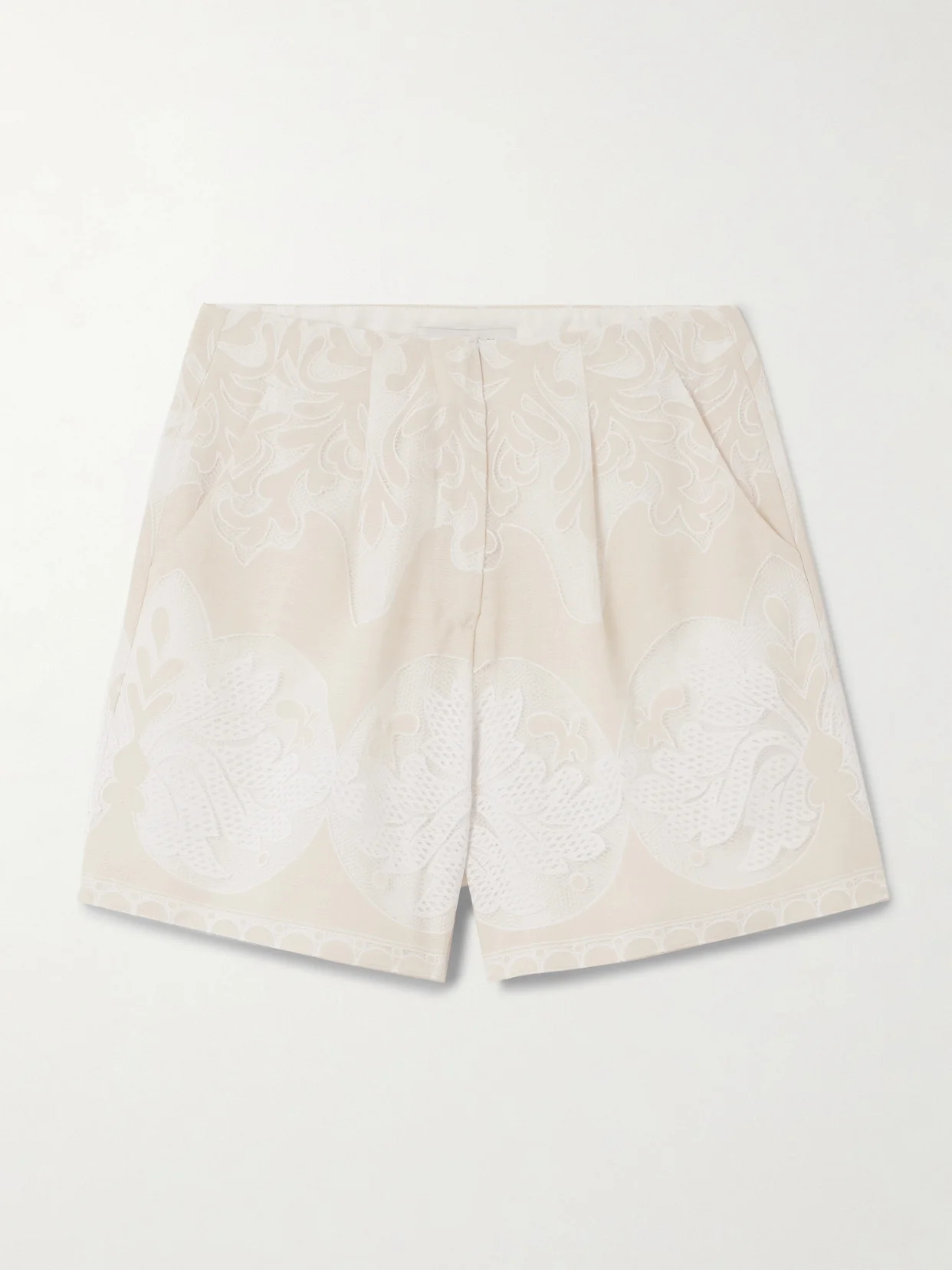 Borgo de Nor's 'Gwen' shorts are made from a combination of airy voile and Raschel lace that create a beautiful textural contrast. They're fully lined for coverage and have sharp pleats that enhance the relaxed fit of the legs. Wear yours with the matching shirt in our edit.