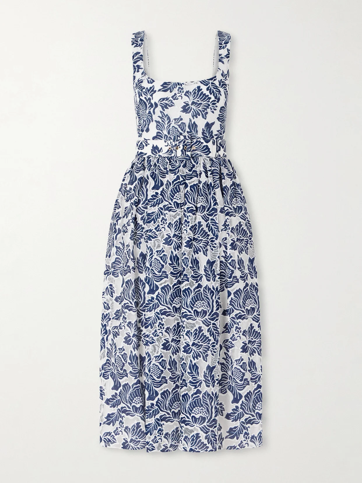 Mackenzie Belted Lace-paneled Cotton-blend Midi Dress