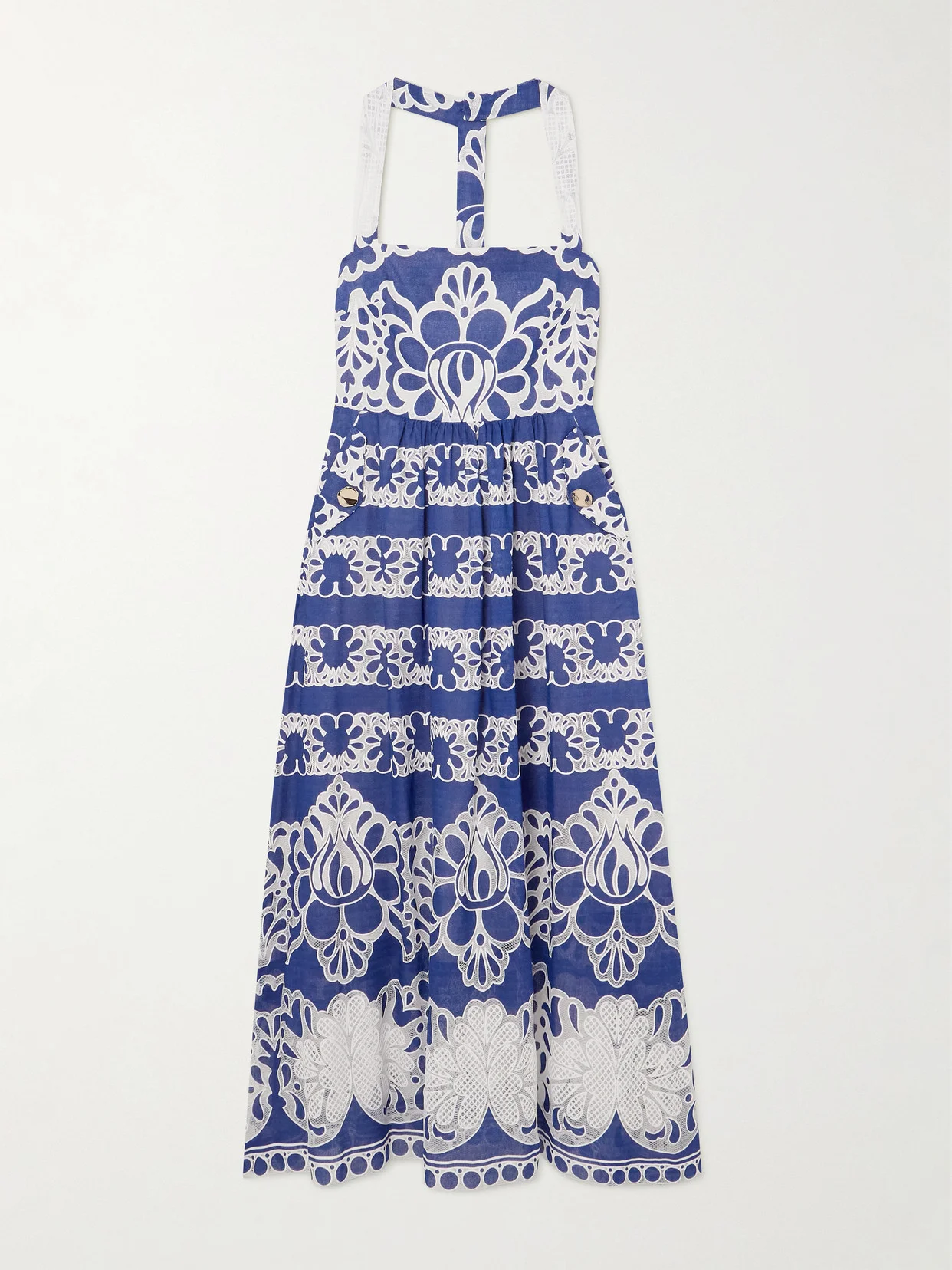 Mavaro Lace-trimmed Embroidered Cotton-blend Midi Dress