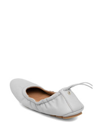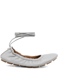 ankle-ties ballet flats Highlights - Light grey - Round toe - Gather detailing - Lace-up design - Slip-on style - Flat sole Imported Composition Sole: Calf Leather 100%, Rubber 100% Outer: LWG-Certified Leather 60%, Calf Leather 40% Lining: Calf Leather 100%